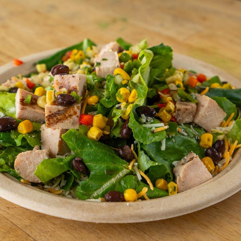 Crisp lettuce, Corn Pico De Gallo, Grilled Chicken, Black Beans, Cheddar Cheese, Cilantro Lime Ranch topped with crunchy tortilla strips